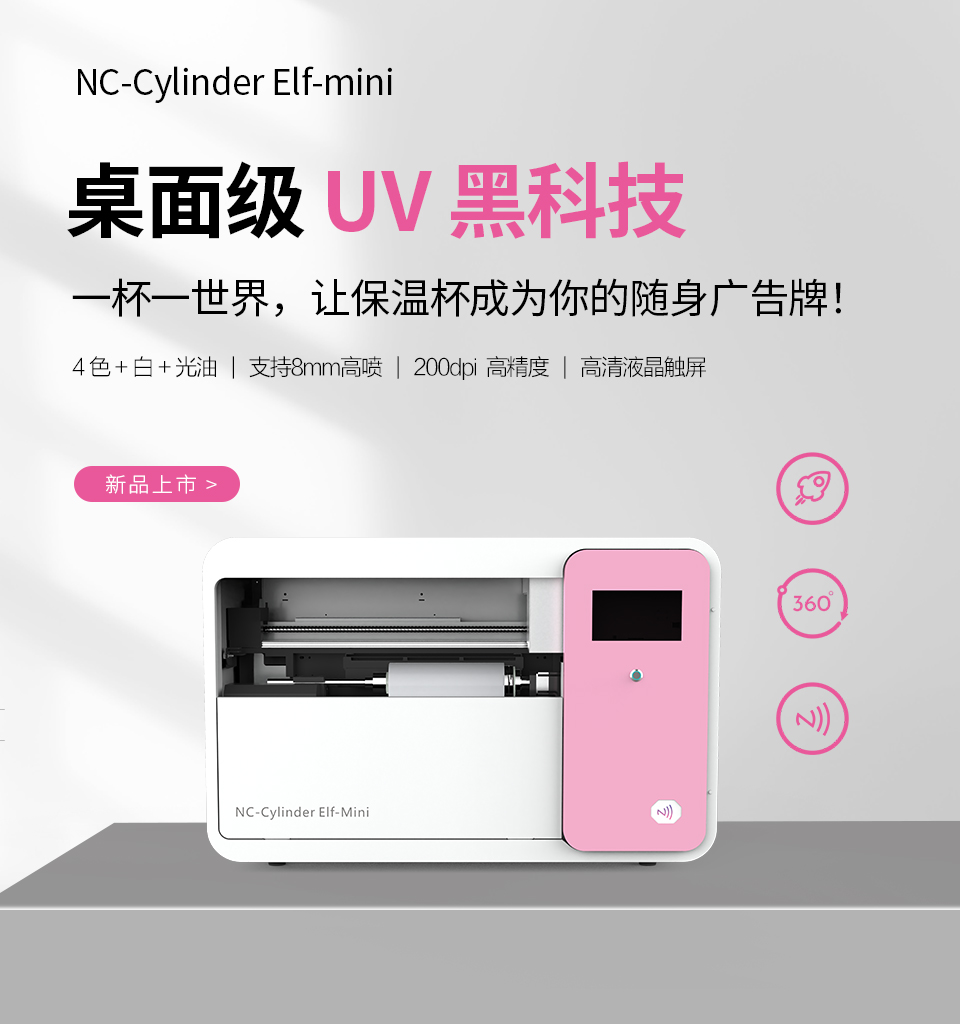 可加裝電動圓柱體治具,實現360度旋轉打印,馬克杯,保溫杯等柱形產品均可打印,滿足多樣化的定制需求。